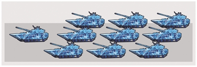 今年參加閱兵的坦克部隊(duì)來(lái)自北京軍區(qū)第38集團(tuán)軍。在所有參閱的裝備方隊(duì)里,它們將第一個(gè)駛過(guò)天安門(mén)廣場(chǎng)。和其他方隊(duì)使用的矩形編隊(duì)不同,坦克方隊(duì)以箭形編隊(duì)前行。這次參閱的坦克為99A式坦克,是99式坦克的改進(jìn)型,性能與99式坦克相比有本質(zhì)性的提升。坦克方隊(duì)受閱長(zhǎng)徑達(dá)112.6米,每行駛100米,駕駛員需要調(diào)整方向48次才能保證騎線,展現(xiàn)的可謂是“指尖上的舞蹈”。